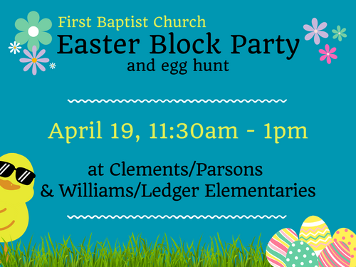 Join us for a Free egg hunt, food, inflatables, & more at Clements/Parsons & Williams/Ledger Elementaries