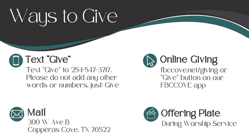 If you need help, call the church office at 254-547-3717, Tuesday - Friday 8am-noon or Tuesday - Thursday 1-3pm or email below.